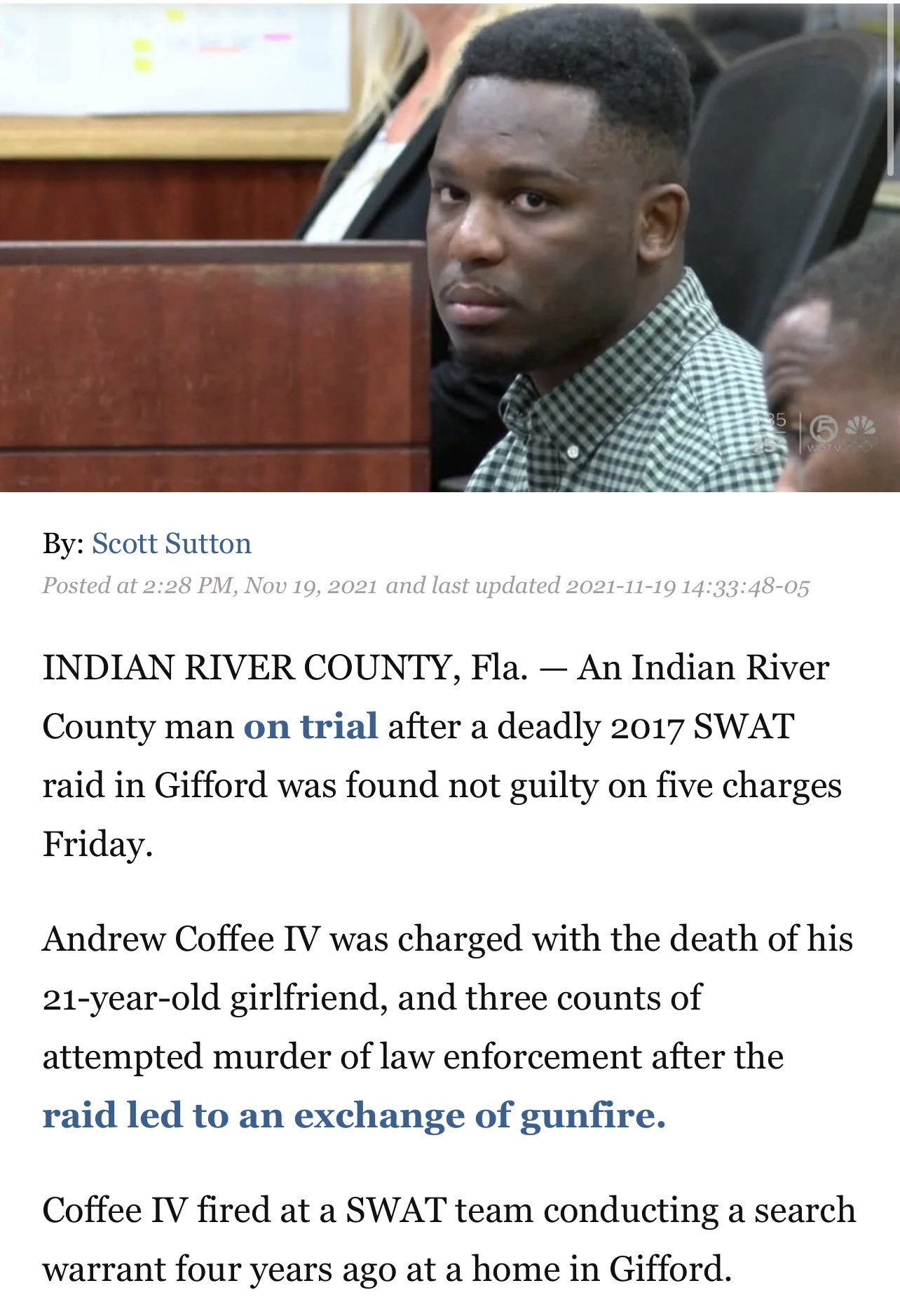 Andrew Coffee Iv Found Not Guilty Of Murder Attempted Murder In Indian River County Swat Raid